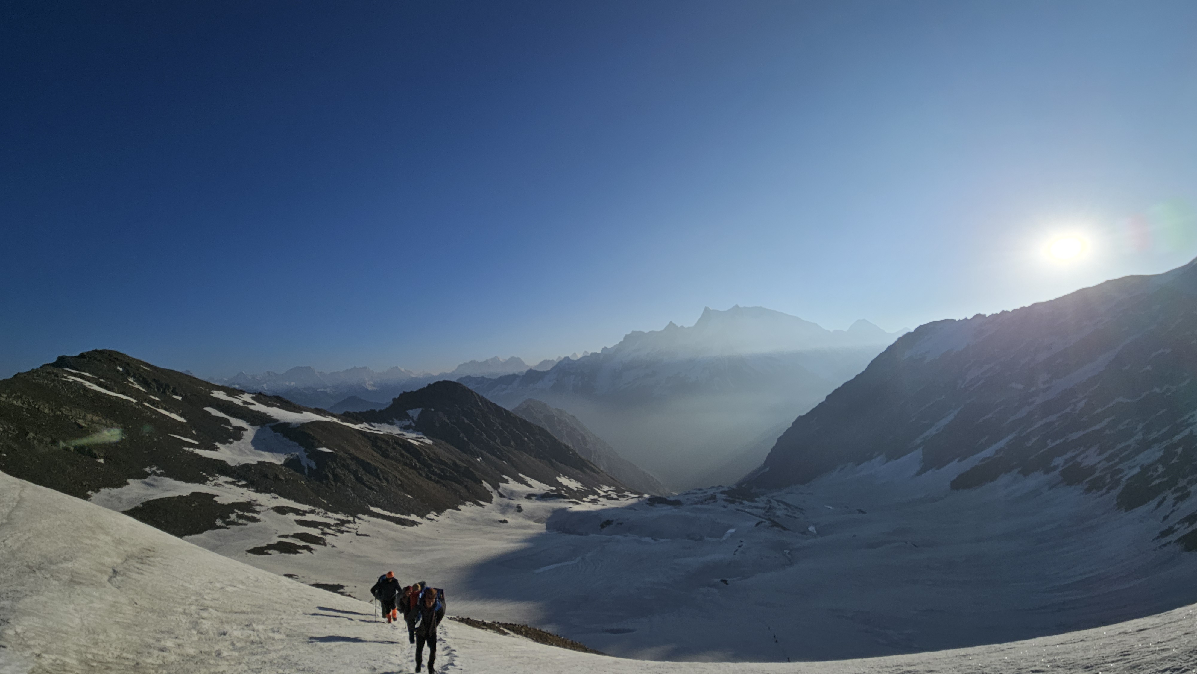 The first sunray hit the snow and suddenly everything was white—as far as the eye could see. And we were at the summit. Reaching the top of the pass, high on adrenaline, surpassed every award I’ve ever earned. Climbing had taken about an hour, but somehow also years since I first learned about Bali Pass. The journey spanned a whole universe of existence. We whooped with joy, hugged, and celebrated with chocolate and selfies. For a moment, we were the coolest people in the world.