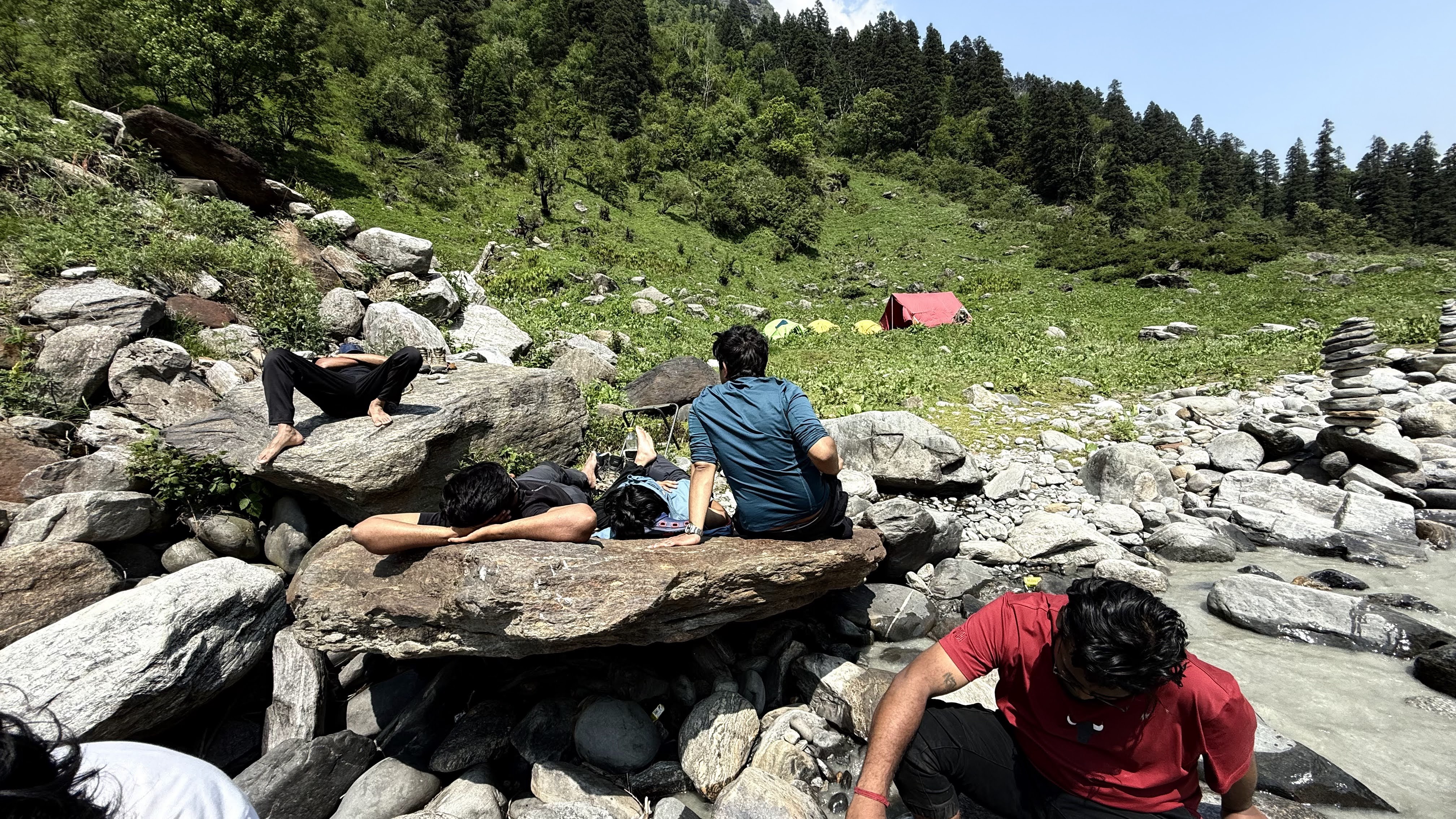 Fortunately, I saw some chocolate wrappers near a rock—other trekkers must’ve rested there—and soon after, I spotted that 60-year-old Army officer. Relief. The rush I felt during that solo sprint was…a lot. Then I saw a few other groups resting, exchanged water bottles, and followed the route again. I reached a bit early—around 1 PM. En route, there was a slight network signal, so I sat quietly for 30 minutes, danced a little, and thought, “This is where life is,” before heading to the forest campsite we could see afar—Lower Damini. Remember that bad weather? The rest of my team got stuck in the rain; it took them 2–3 hours longer to cover the same stretch. They were drenched when they got back. The following day, we met our caravan driver and headed back to Dehradun. And just like that, it ended: a thrilling adventure where each of us learned something about ourselves—and about the people walking beside us.